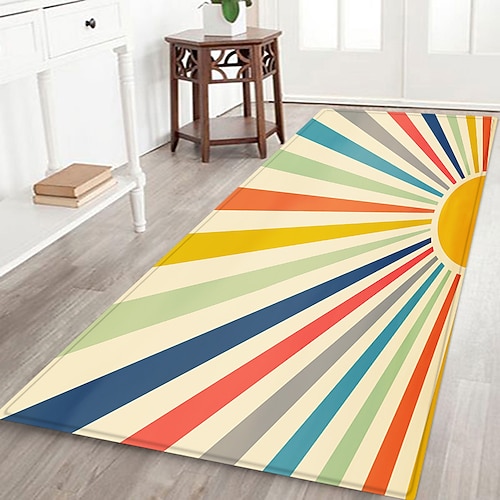 tappeto da corridoio con motivo geometrico a sole, tessuto di flanella stampato, decorazione per pavimenti per la casa, zerbino antiscivolo morbido, tappeto per ingresso e bagno