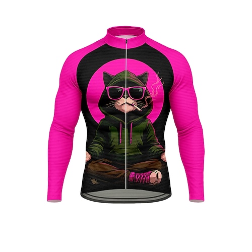 Per uomo Top Maglia da Ciclismo Animale Gatto Manica Lunga Bicicletta Maglia Top con 3 tasche posteriori Sole Protezione Solare Protezione solare Asciugatura Rapida Gli sport Nero Rosa Blu reale