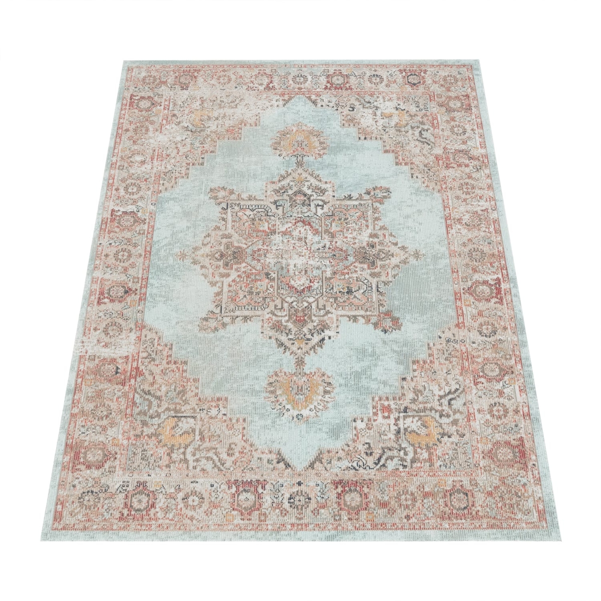 KADIMA DESIGN Outdoor Teppich Orientalisch Vintage Balkon, Terrasse schmutzabweisend Türkis Läufer 60x100 | 100% Polypropylen | Florhöhe: 2 mm | pflegeleicht