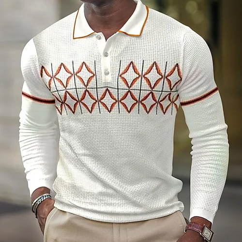 Per uomo Blocco di colori Geometrico Magliette Polo a Nido d'Ape Manica Lunga Magliette polo Camicie con Colletto Business Casual Affari Abbigliamento da lavoro Abbigliamento quotidiano Bottoni