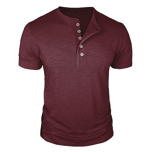 Per uomo Maglia Henley Maglietta Maglietta 100% cotone Manica Corta Tinta unica Semplice Tinta unita Casual Bottoni Henley Casuale Quotidiano All'aperto Estate Primavera Autunno Tutte le stagioni