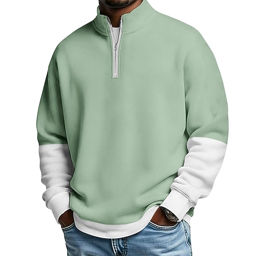 Per uomo Maglietta Maglietta a Maglia Waffle Camicia a Maniche Lunghe Manica Lunga Zip a un quarto Primavera Autunno Blocco di colori Moda Designer Essenziale Patchwork Cerniera Vacanza Streetwear