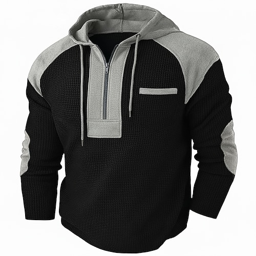 Per uomo Maglietta Waffle Maglietta Maglia Henley a nido d'ape Camicie da uomo con toppe sui gomiti Manica Lunga Con Cappuccio Maglione Mezza zip Autunno Autunno Inverno Tinta unica Blocco di colori