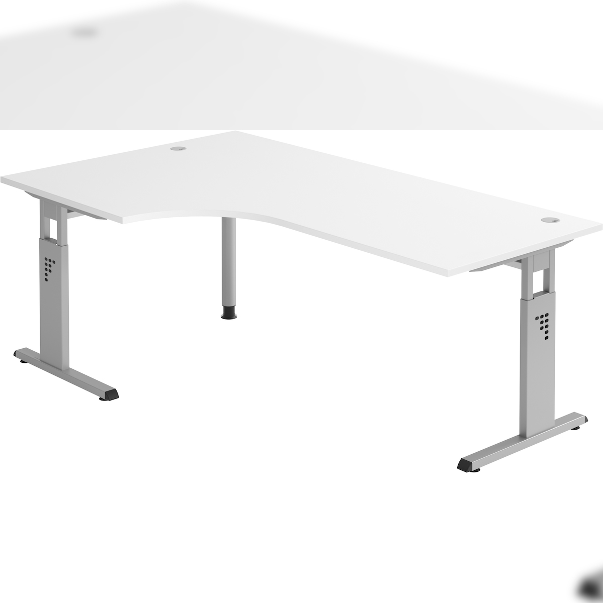 bümö höhenverstellbarer Eckschreibtisch O-Serie 200x120 cm in weiß, Gestell in Silber - Schreibtisch L Form, großer Tisch für's Büro, Computertisch