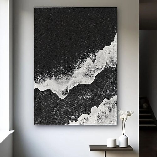 Dipinto a olio fatto a mano su tela, decorazione da parete, semplice, astratto, in bianco e nero, con trama a onde, per la decorazione della casa, dipinto appeso su telaio teso/dipinto arrotolato