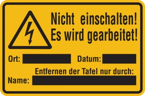 Warnschild, Nicht einschalten! Es wird gearbeitet! - zum Selbstbeschriften - 300x200x1.5 mm Kunststoff