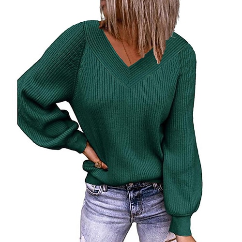 Per donna Felpa Maglione Vintage Moda Streetwear Tinta unica Scollo a V Lavorato a maglia Manica Lunga Top Regolari Maglia Quotidiano Ferie Uscire Nero Rosso Autunno Inverno