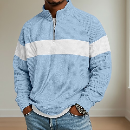 Per uomo Magliette Polo a Nido d'Ape Polo con zip a un quarto All'aperto Casual Zip a un quarto Manica Lunga Moda Moderno Tinta unica Patchwork Blocco di colore Autunno Primavera Autunno Autunno