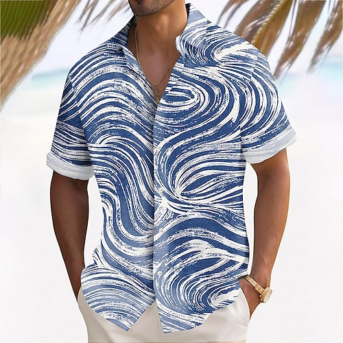 Per uomo Geometrico Con onde Camicia Camicia Estiva Camicia con Bottoni Manica Corta Moda Casual All'aperto Vacanza Abbigliamento Quotidiano Estate Primavera Collo ripiegato Stampa 3D camicie con