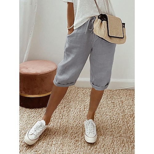 Per donna Normale 100% cotone Chinos Pantaloni Larghi Tinta unita Comfort Lunghezza alla caviglia Misura del girovita medio Tasche Laterali Elastico in vita Baggy Comodità Micro-elastico Casuale