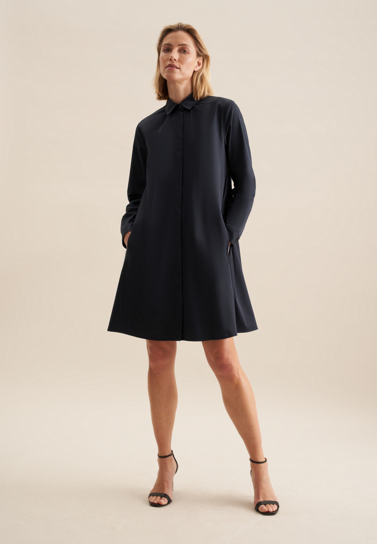 Sommerkleid SEIDENSTICKER "Schwarze Rose", Damen, Gr. XXL (44), Normalgrößen, blau (dunkelblau), 97% Baumwolle 3% Elastan, glänzend, unifarben, regular fit, Langarm, Kleider, Langarm Kragen Uni