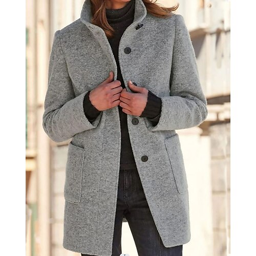 Per donna Cappotto Invernale Caldo Confortevole Patchwork Tasca Bottoni Vintage Moda Casual Tinta unica Vacanza Streetwear Casuale Abbigliamento quotidiano Lungo Collo alla coreana Vestibilit