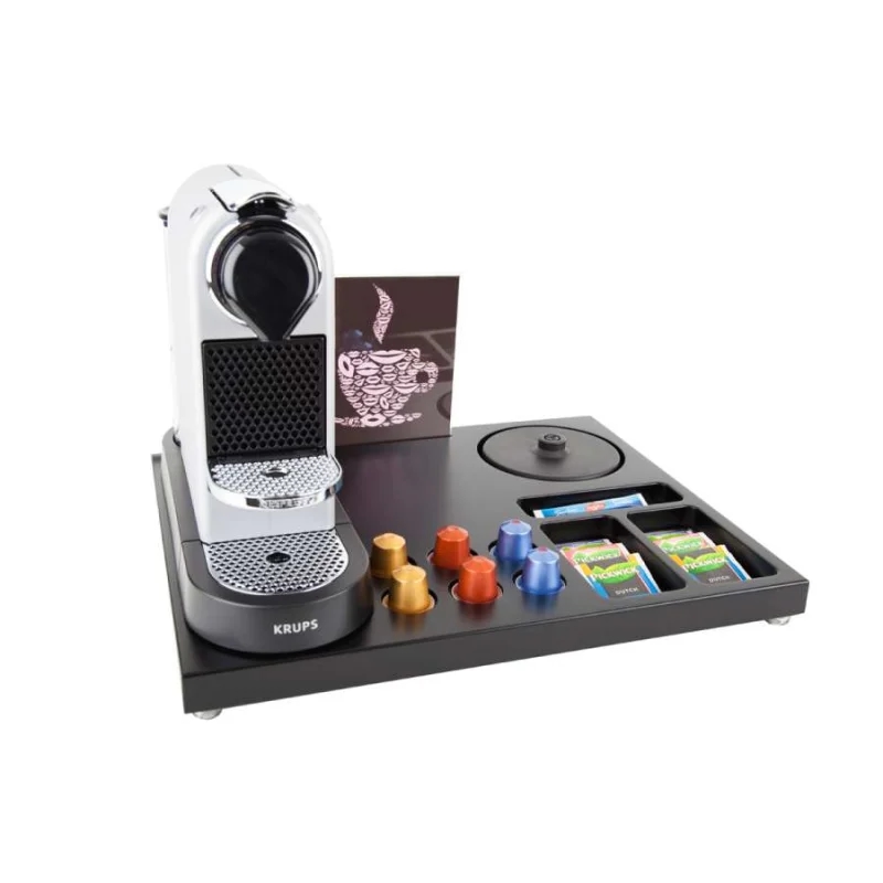Willkommenstablett SUPREME Schwarz-Braun und A5 Prospekthalter
