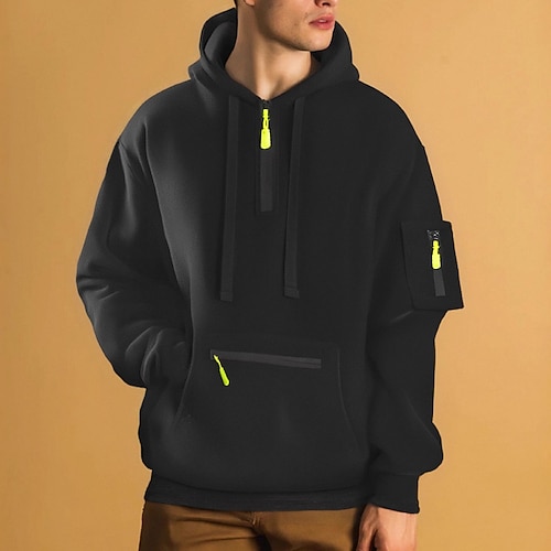 Per uomo Felpa Di pile Felpa con cerniera a un quarto Blu marino Cachi Grigio mezza cerniera Liscio Tasche Sportivo Giornaliero Per eventi Streetwear Fantastico Informale Inverno Primavera Autunno