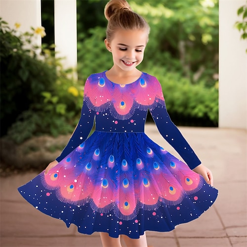 ragazze' 3D Piume Abito Manica Lunga Estate Primavera Vacanza Quotidiano Ferie Principessa Bello Dolce Bambini 4-12 Anni Vestito Casual Abito a trapezio Lunghezza al ginocchio Vestibilità regolare