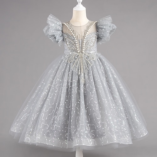 Abito da damigella d'onore bambina Ragazze Abito Abito formale Abito da principessa Abito per la Prima Comunione Vestito da Festa Performance Matrimonio Feste Principessa Dolce Pasqua Rete Senza