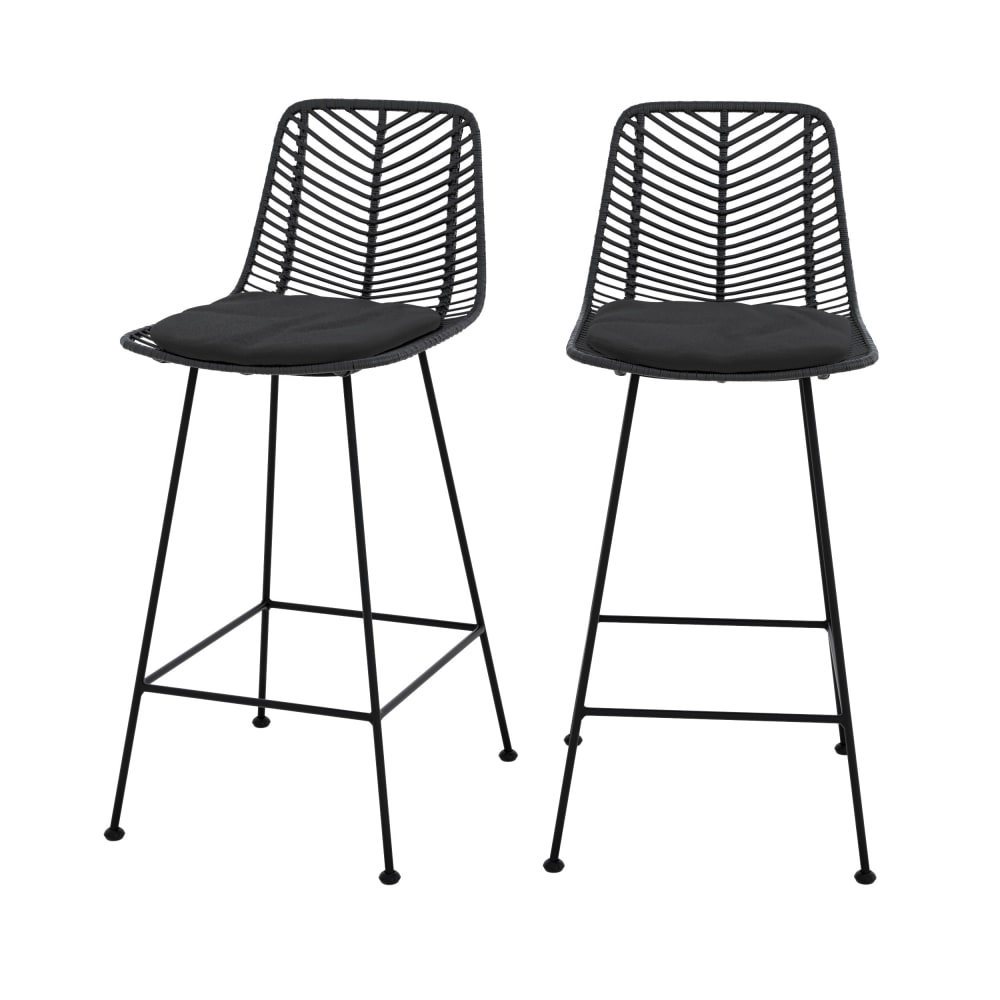 Set di 2 sedie da bar 66 cm in rattan nero