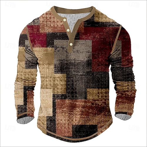 Per uomo Grafico Geometrico Maglia Henley Maglietta Manica Lunga Vintage Moda Designer Casuale Quotidiano All'aperto Primavera Autunno Tutte le stagioni Marrone scuro Viola Blu scuro Henley