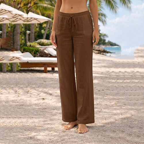Per donna Pantaloni in cotone e lino Gamba larga Chinos Vacanza Streetwear Casual Lunghezza intera Vita media Semplice Coulisse Tasca Confortevole Micro-elastico Quotidiano All'aperto Streetwear