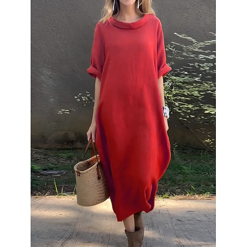 Per donna Abito maxi Abito a Tubino Casual Quotidiano Vestibilità regolare Semplice Manica 3/4 Scollo a Cascata Nero Bianco Giallo Rosso Estate Primavera Autunno