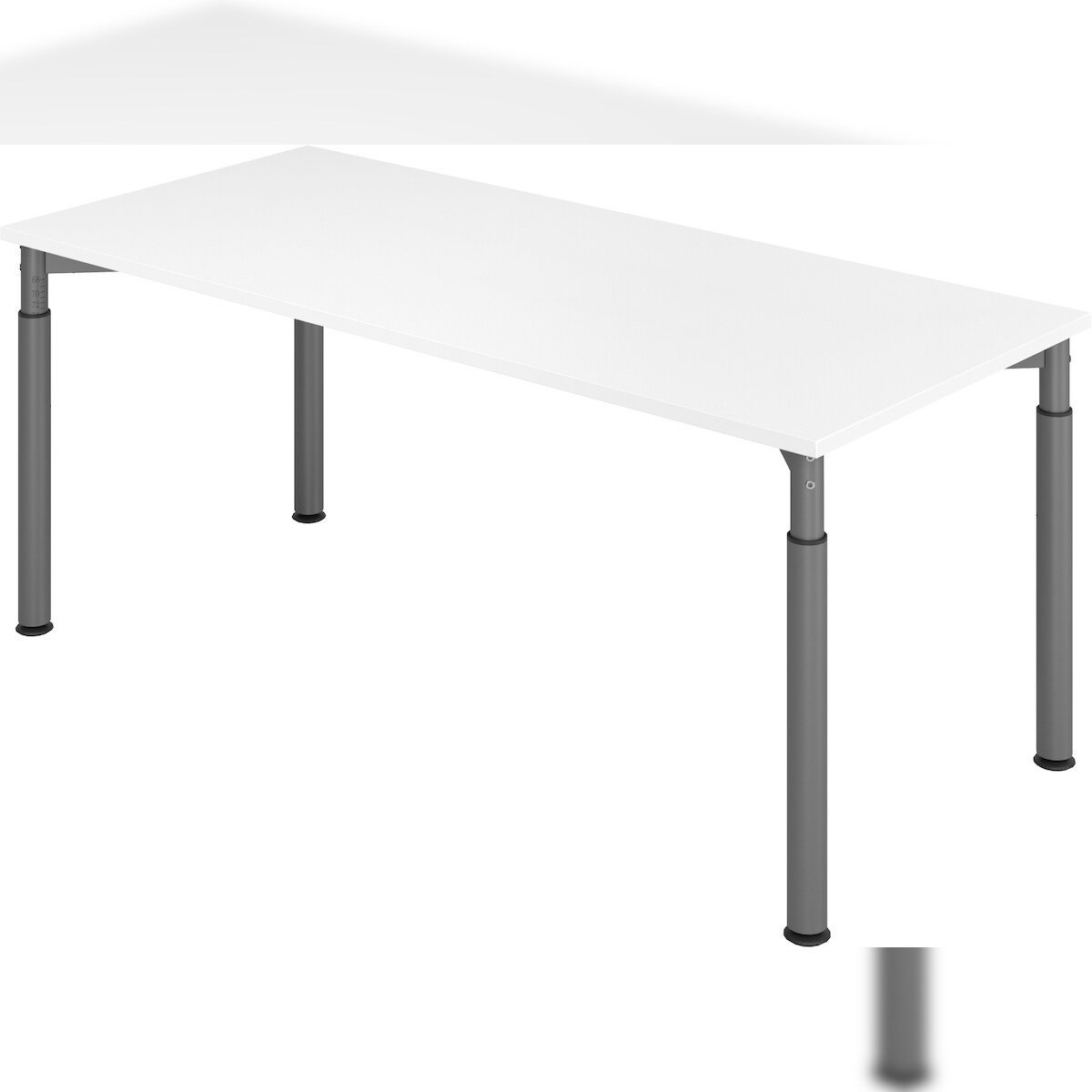 bümö höhenverstellbarer Schreibtisch 180x80 cm in weiß, Gestell graphit - PC Tisch höhenverstellbar & groß, höhenverstellbarer Tisch Büro, großer
