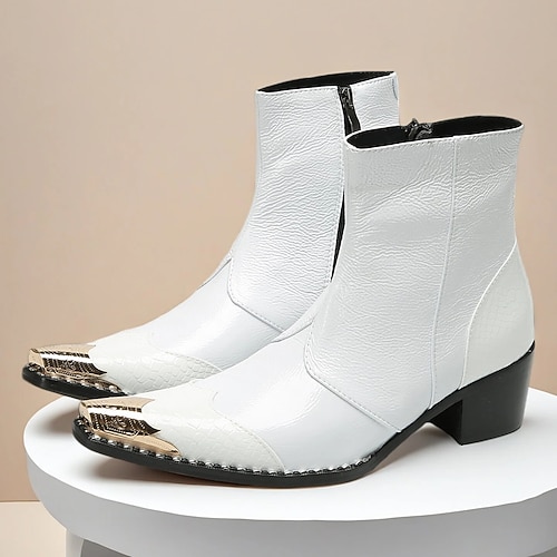 stivaletti da uomo in pelle bianca - design elegante con chiusura a cerniera, eleganti e versatili per occasioni formali e semi-formali