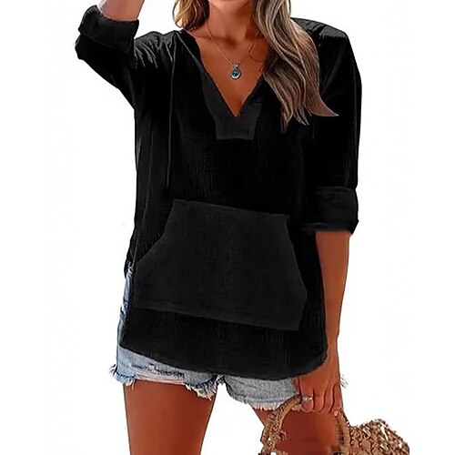 Per donna Blusa 100% cotone Semplice Elegante Vintage Manica Lunga Scollo a V Top Regolari Quotidiano Ferie Uscire Patchwork Tasca Nero Bianco Rosa Blu marino Arancione Estate Primavera