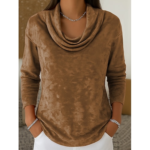 Per donna Tunica Maglietta Tinta unica Grafico Elegante Vintage Moda Manica Lunga Scollo a Cascata Top Regolari Quotidiano Uscire Weekend Stampato A Strati Blu Rosa Rosso Marrone Verde Autunno Inverno