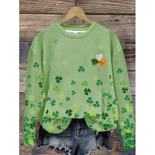 Felpa con cappuccio da donna per il Giorno di San Patrizio grafica trifoglio casual maniche lunghe collo rotondo top regolari casual street quotidiano grigia verde bianca verde primavera inverno
