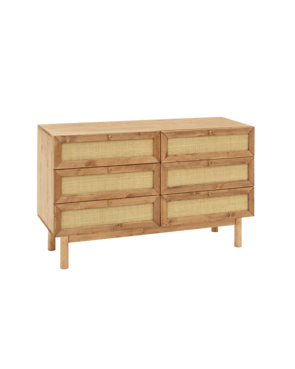 Cassettiera in legno massello e rafia sei cassetti marrone 76x120cm