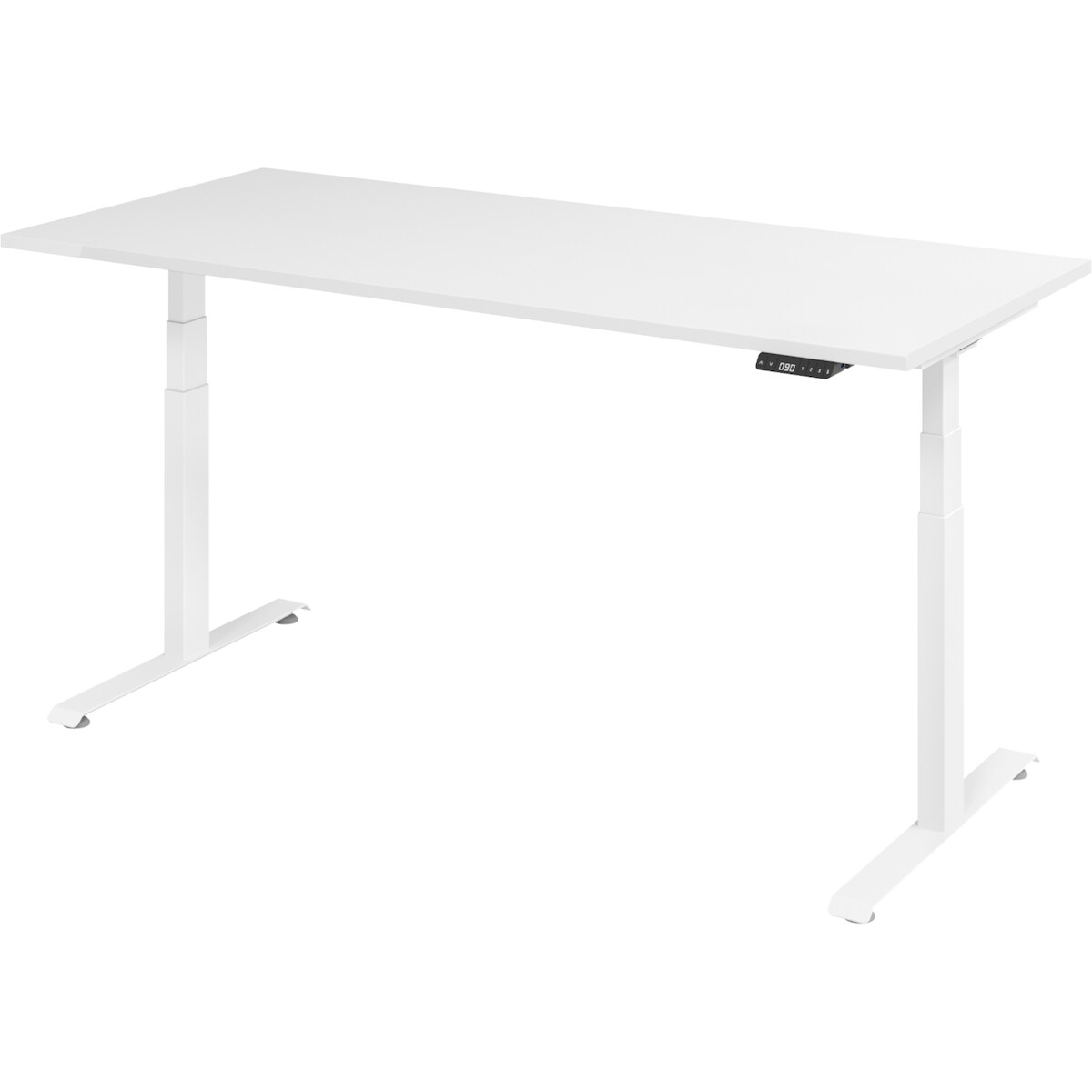 bümö höhenverstellbarer Schreibtisch 180 x 80 cm in weiß, Gestell silber - Höhenverstellbar Elektrisch Stehpult mit 3-fach Speicher, Computertisch,
