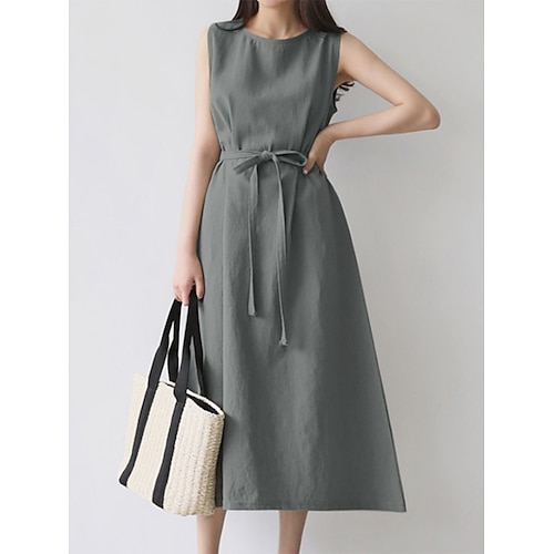 Per donna Abito Midi Abito a trapezio Abito Estivo Casual Quotidiano Vestibilità regolare Semplice Senza Maniche Girocollo Arancione Blu scuro Beige Grigio Estate