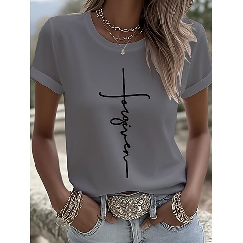 Per donna Maglietta Grafico Lettera Vintage Moda Elegante Manica Corta Girocollo Top Regolari Quotidiano Weekend Stampato Blu Bianco Rosso Grigio Estate Primavera Autunno Inverno