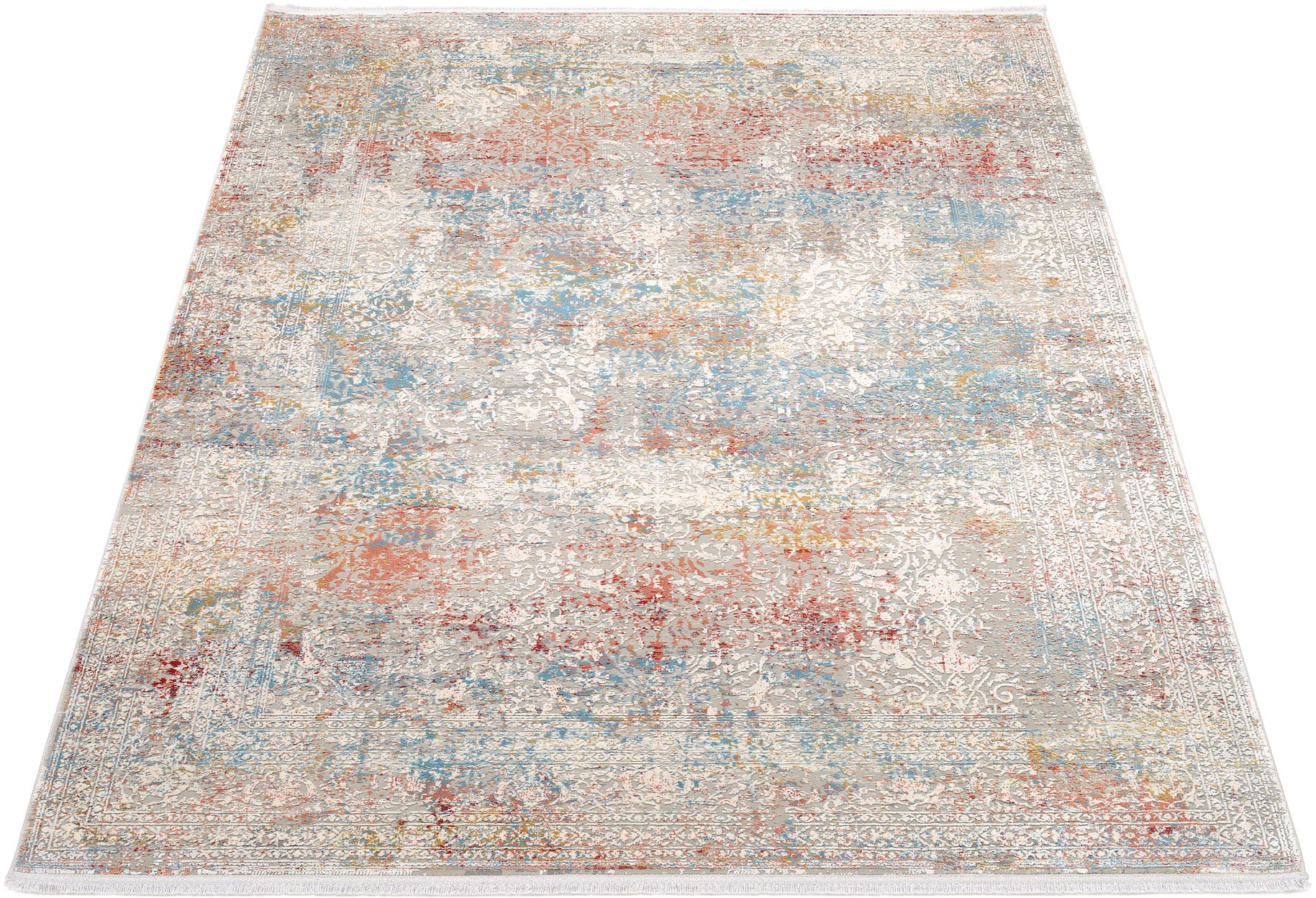 Teppich OCI DIE TEPPICHMARKE "BESTSELLER CAVA", bunt (multi), B:60cm H:8mm L:90cm, Kunstfaser, Viskose, Teppiche, Fransenteppich, Glanz Viskose, mit Fransen, Hoch Tief Struktur, Vintage, Wohnzimmer
