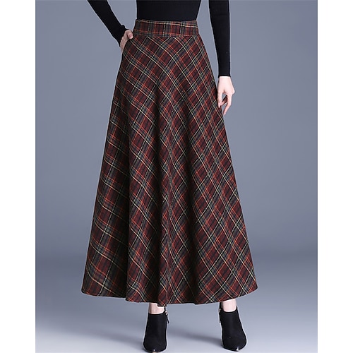Per donna Gonna scozzese Gonna Lunga Elegante Retrò Vintage Maxi Vita Alta Gonne Plaid Blocco di colori Tasca Lungo Micro-elastico Quotidiano Casual Quotidiano Verde militare Rosso Viola Autunno 100