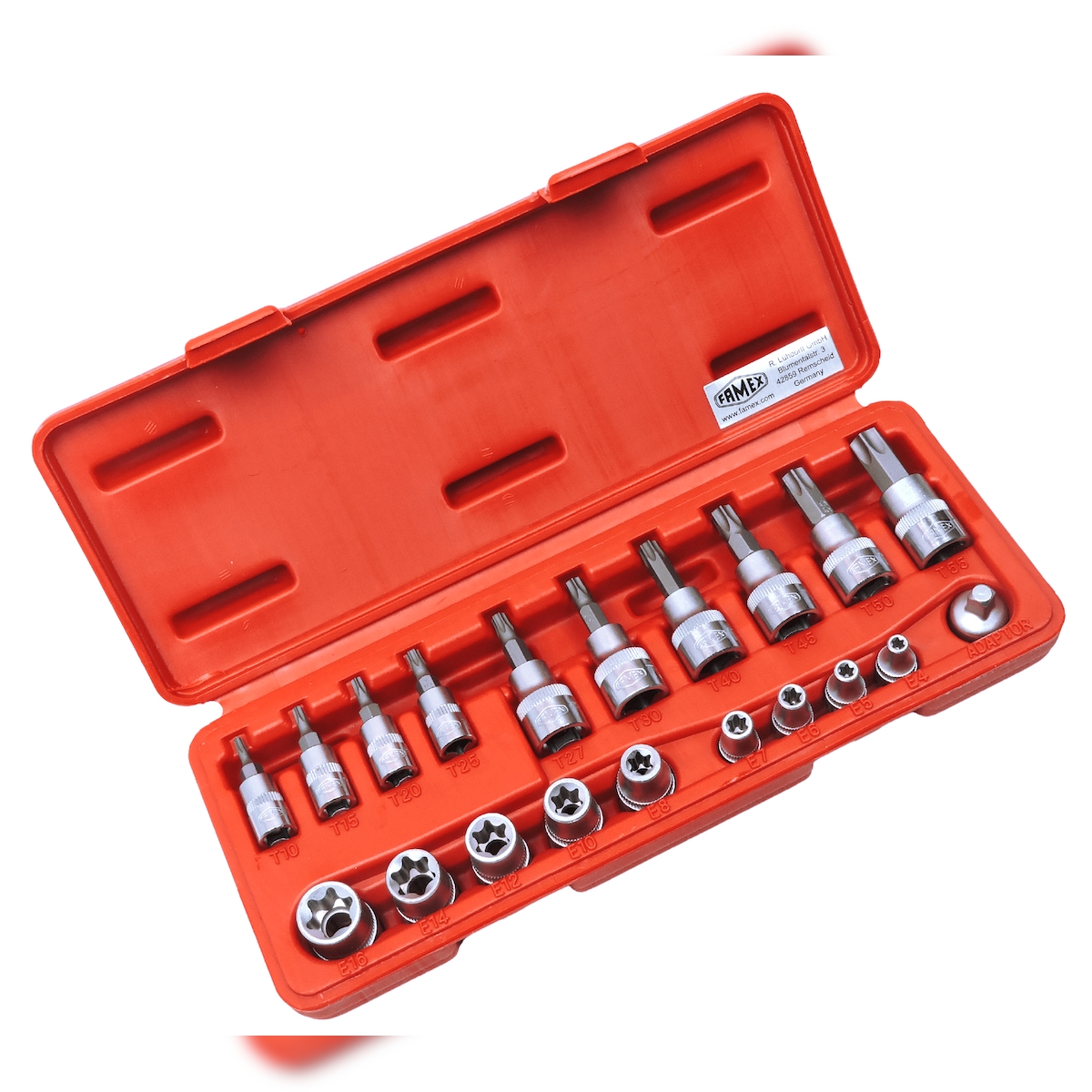 FAMEX Werkzeuge FAMEX 10520 Steckschlüsselsatz für Torx Schrauben und Biteinsätze mit Stirnlochbohrung