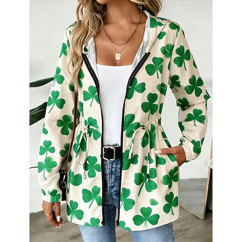 Per donna Giacca Giacca con Cappuccio Traspirante Stampato Sport Moda Casual Motivo Quotidiano Giorno di San Patrizio Weekend San Patrizio Cerniera Regolare Con Cappuccio Vestibilità regolare Manica