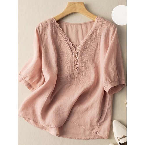 Per donna Blusa Tinta unica Elegante Casual Manica 3/4 Scollo a V Top Regolari Quotidiano Pizzo a contrasto Blu Nero Bianco Rosa Blu marino Estate