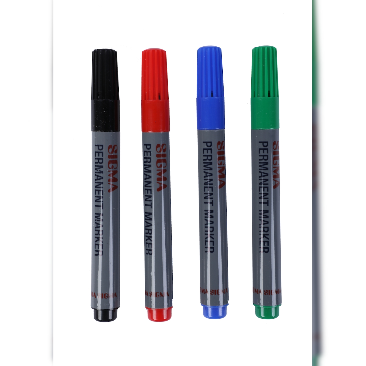 SIGMA Permanentmarker WI61RU, farbig sortiert, Rundspitze, Strichstärke: 1-3 mm, wasserfest, 4 Stück