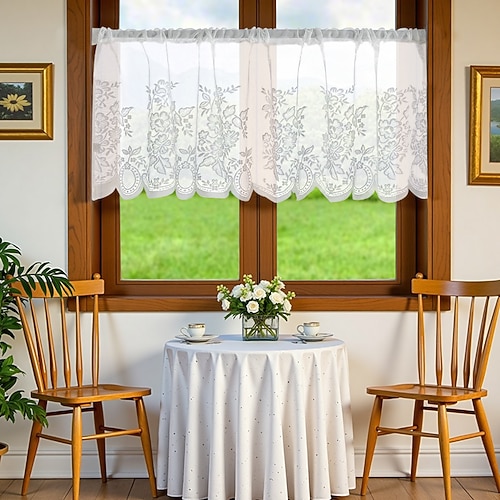 Tende a manto in pizzo a strati, lunghe, vintage, floreali, corte, stile fattoria, per piccole finestre, bar, cucina, tende con fondo smerlato e ricamo, 1 pannello