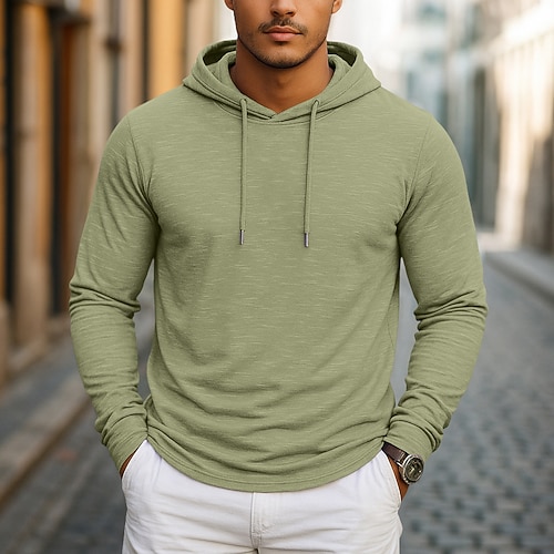 Per uomo Maglietta Manica Lunga Con Cappuccio Primavera Autunno Tutte le stagioni Tinta unica Tradizionale / Vintage Casual Con cappuccio All'aperto Vacanza Casuale Marrone scuro Verde Blu chiaro