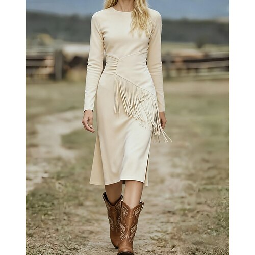 Per donna Abito Midi Tubino Casual Quotidiano Vestibilità regolare Plaid Manica Lunga Girocollo Vino Beige Grigio Autunno Inverno