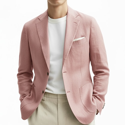 Per uomo Giacca blazer Blazer di Lino Colletto ad incastro Moda Leggero Casual Tinta unita Blazer Blazer in lino Nero Bianco Rosa Vestibilità su misura Monopetto Due Bottoni