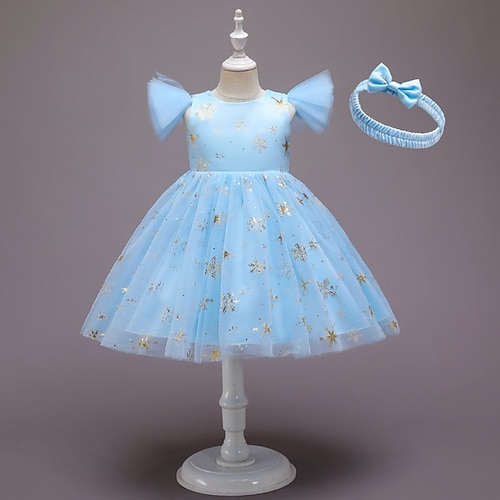 Abito da damigella d'onore bambina Ragazze Abito formale Abiti da sposa Feste Matrimonio Formale Moda Principessa Bello Rete Stella Senza Maniche Girocollo Blu Nero Dai 4 anni in su