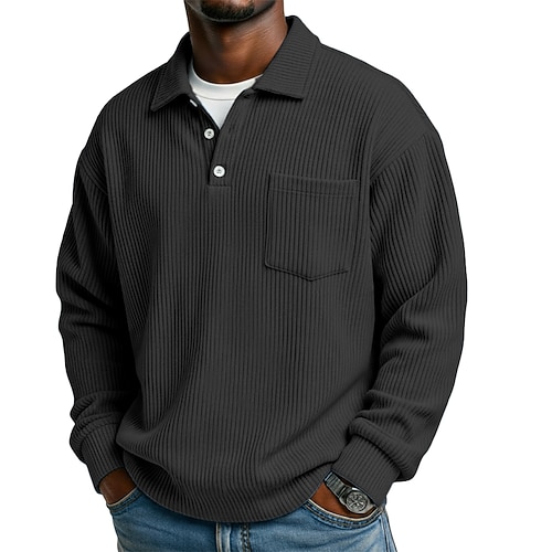 Per uomo Camicia di Velluto a Coste Testurizzato Casuale Sportivo Bavero Manica Lunga Moda Essenziale Blocco di colori Tasca Bottoni Autunno Primavera Autunno Autunno Inverno Vestibilità regolare