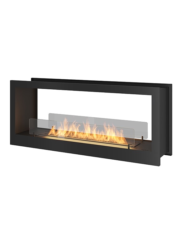 SOLOLED Design-Einbau-Bioethanol-Wandkamin Doppelseitig mattschwarz mit Schutzglas 2 Side 1200