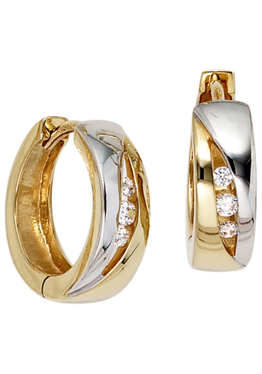 Paar Creolen JOBO, gold (gelbgold 333), Ohrringe, Damen, Gelbgold 333, rund 333 Gold bicolor mit Zirkonia