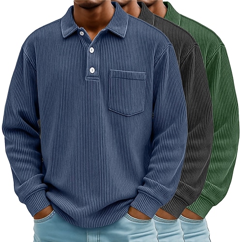Per uomo Camicia di Velluto a Coste Testurizzato Casuale Sportivo Bavero Manica Lunga Moda Essenziale Blocco di colori 3 pezzi Caldo Autunno Primavera Autunno Tutte le stagioni Vestibilità regolare