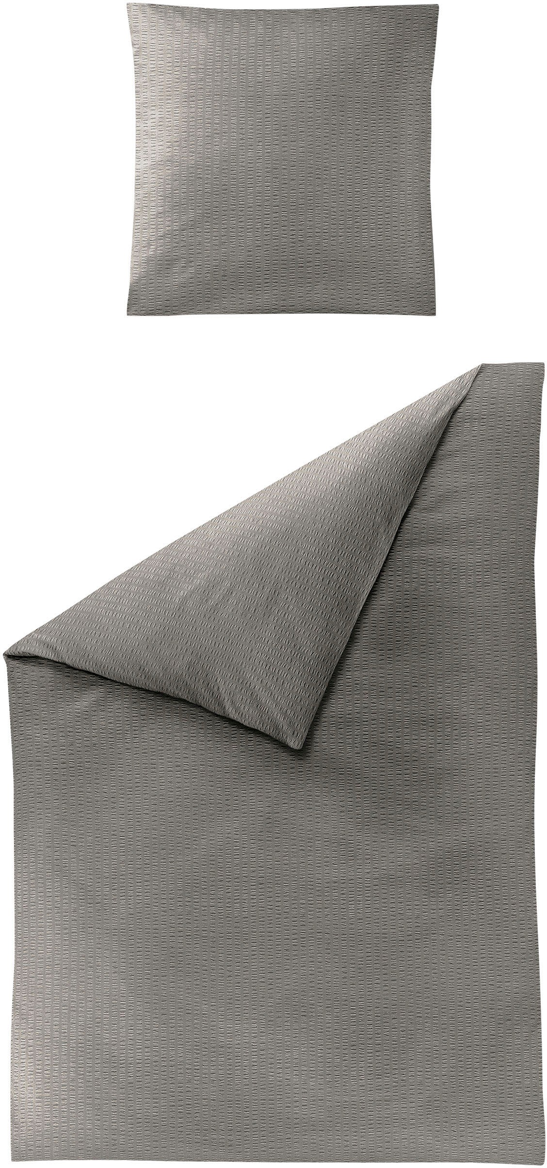 Bettwäsche BIERBAUM "Chic Uni", grau (dunkelgrau), B/L: 155cm x 220cm, , Seersucker, B/L: 40cm x 80cm, Seersucker, Obermaterial: 100% Baumwolle, Bettwäsche, Schickes Unidesign: Modern und elegant für jedes Schlafzimmer