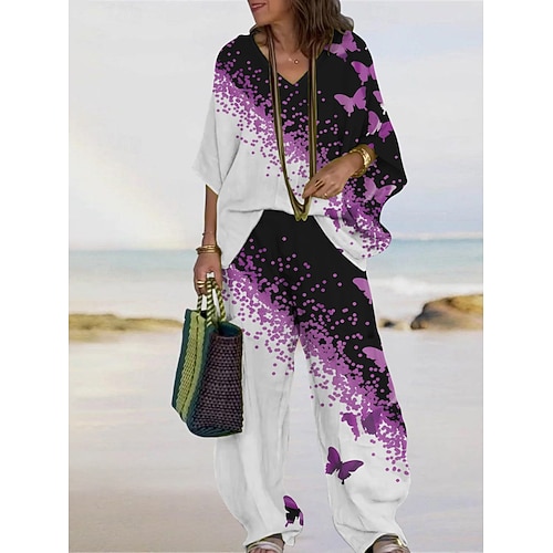 Per donna Normale Tuta Streetwear Tinta unica Manica 3/4 Gamba larga Girocollo Tasca Streetwear Quotidiano Vestibilità regolare Nero Rosa Vino Autunno